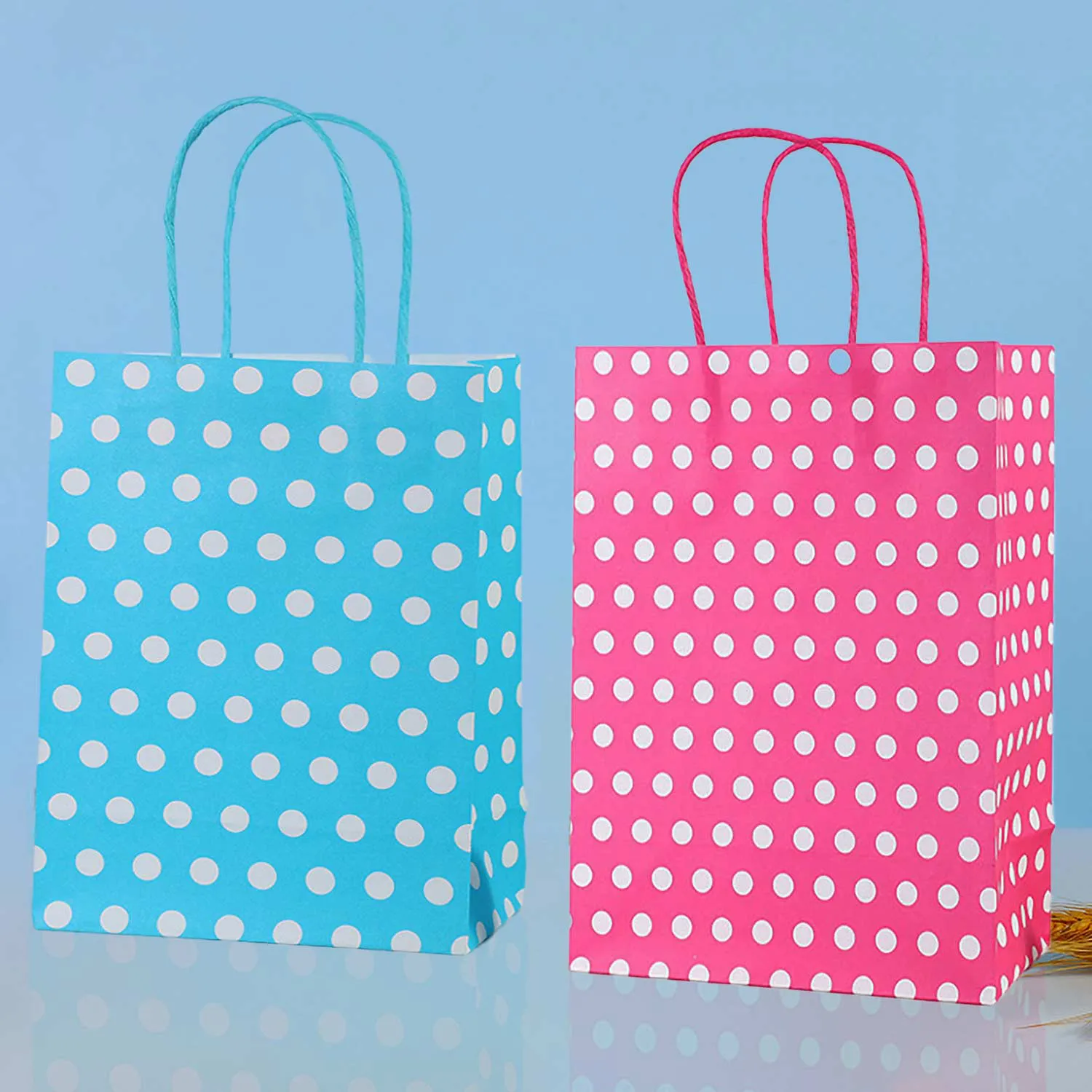 捷伦16 PCS彩色礼品袋套装,4个丝带提手纸礼品袋,可爱波点纸袋,牛皮纸袋