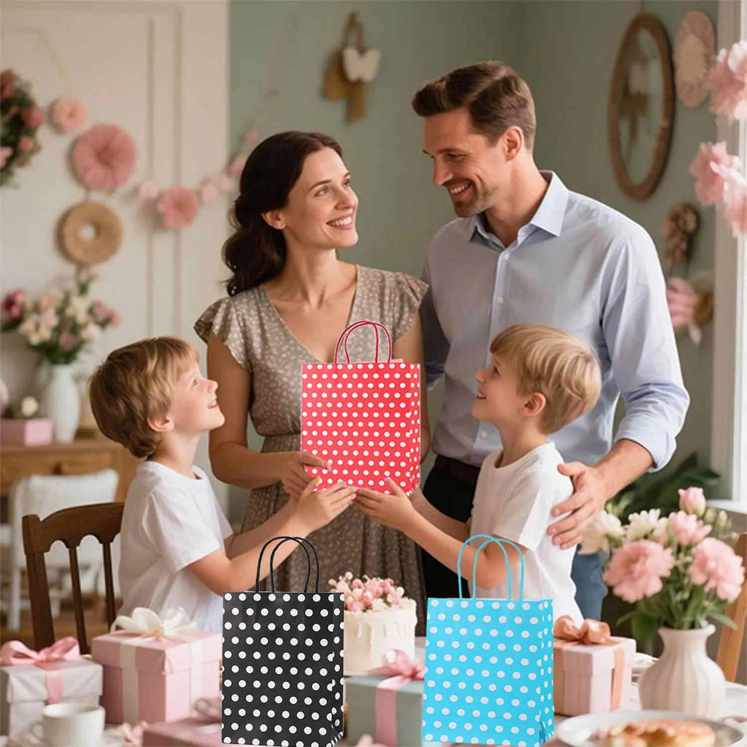 时尚圆点礼品包装袋:采用四色波点图案设计,每种颜色有4件,共16件。