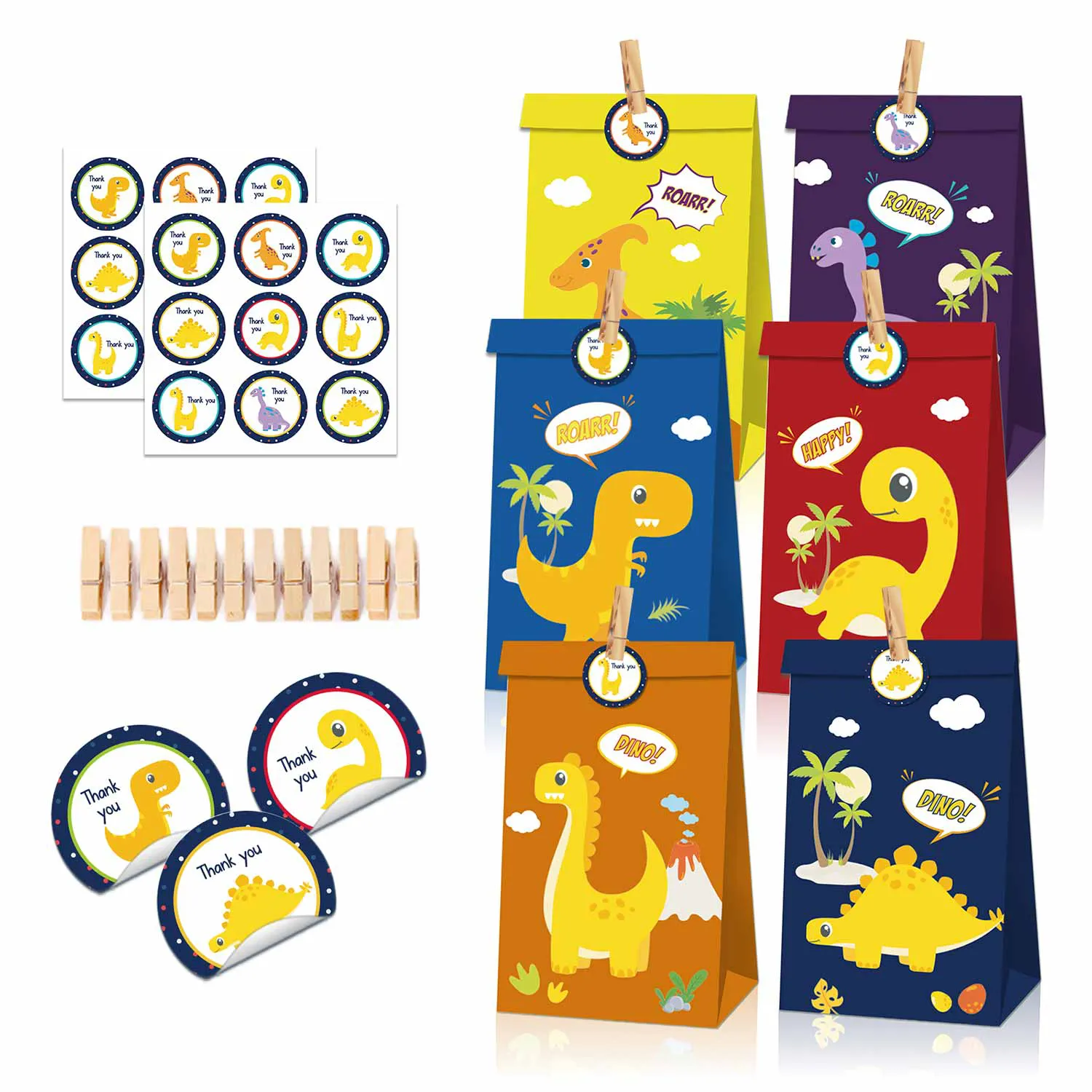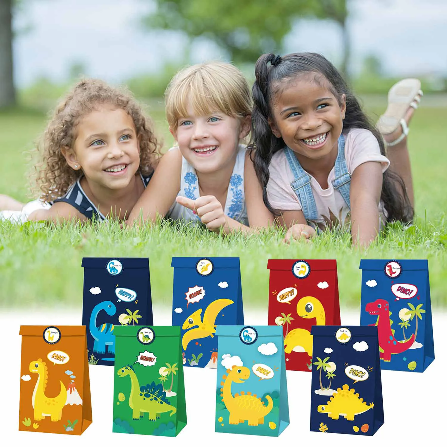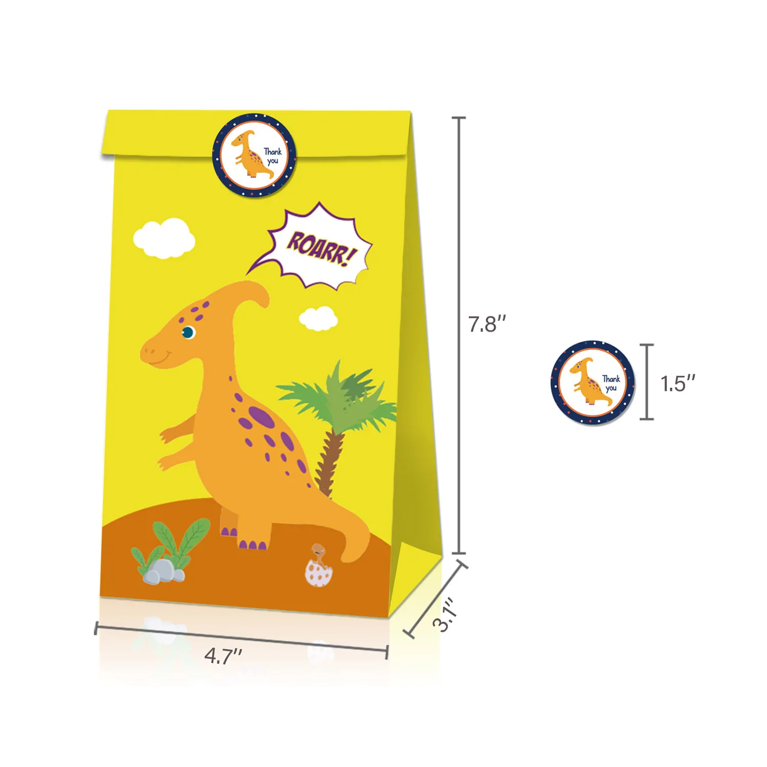JIELEN 12个恐龙图案礼品袋-派对礼品袋,糖果袋,战利品袋,购物纸袋,牛皮纸袋,糖果袋