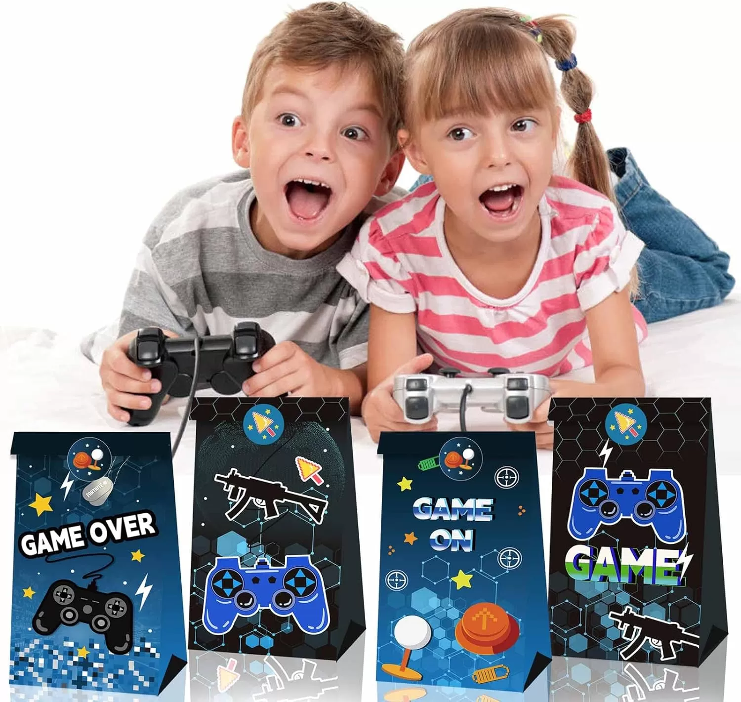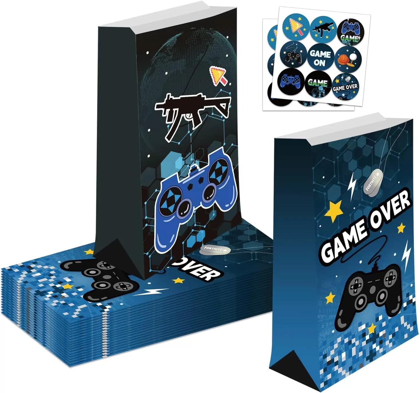 JIELEN 12个游戏控制器战利品袋、礼品袋、像素纸袋、购物袋、带贴纸的牛皮纸袋
