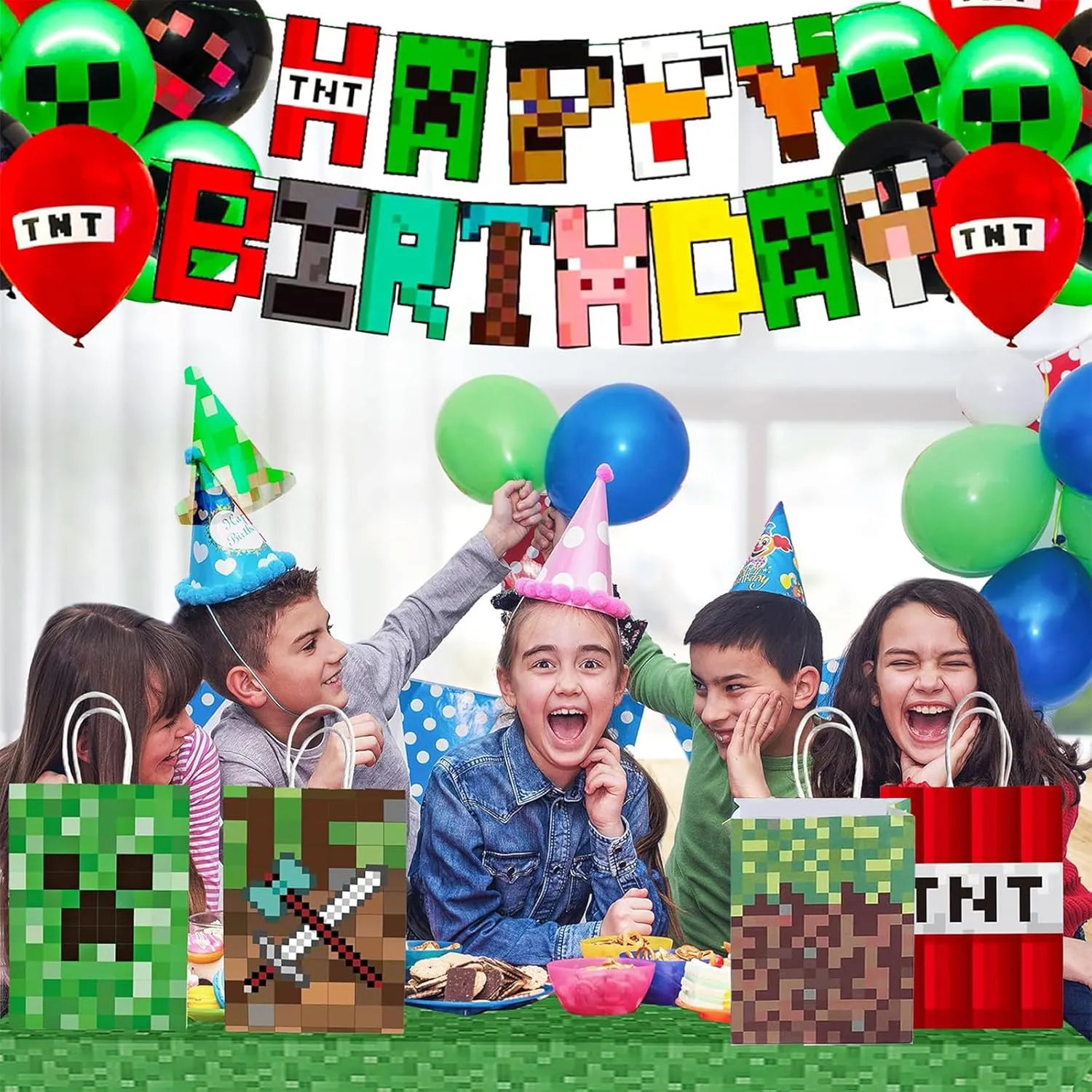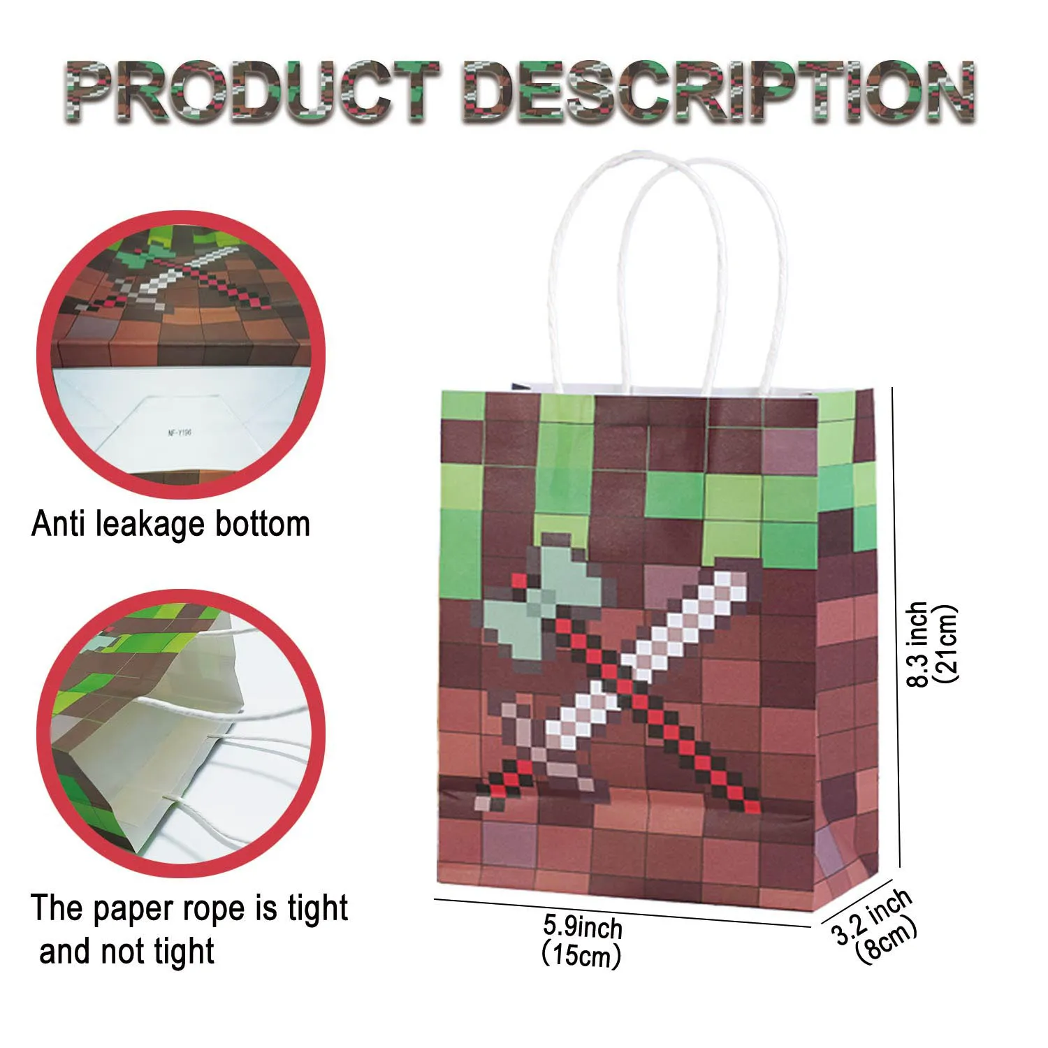 捷伦24 PCS像素礼品纸袋,游戏主题元素生日礼品袋,手持纸袋