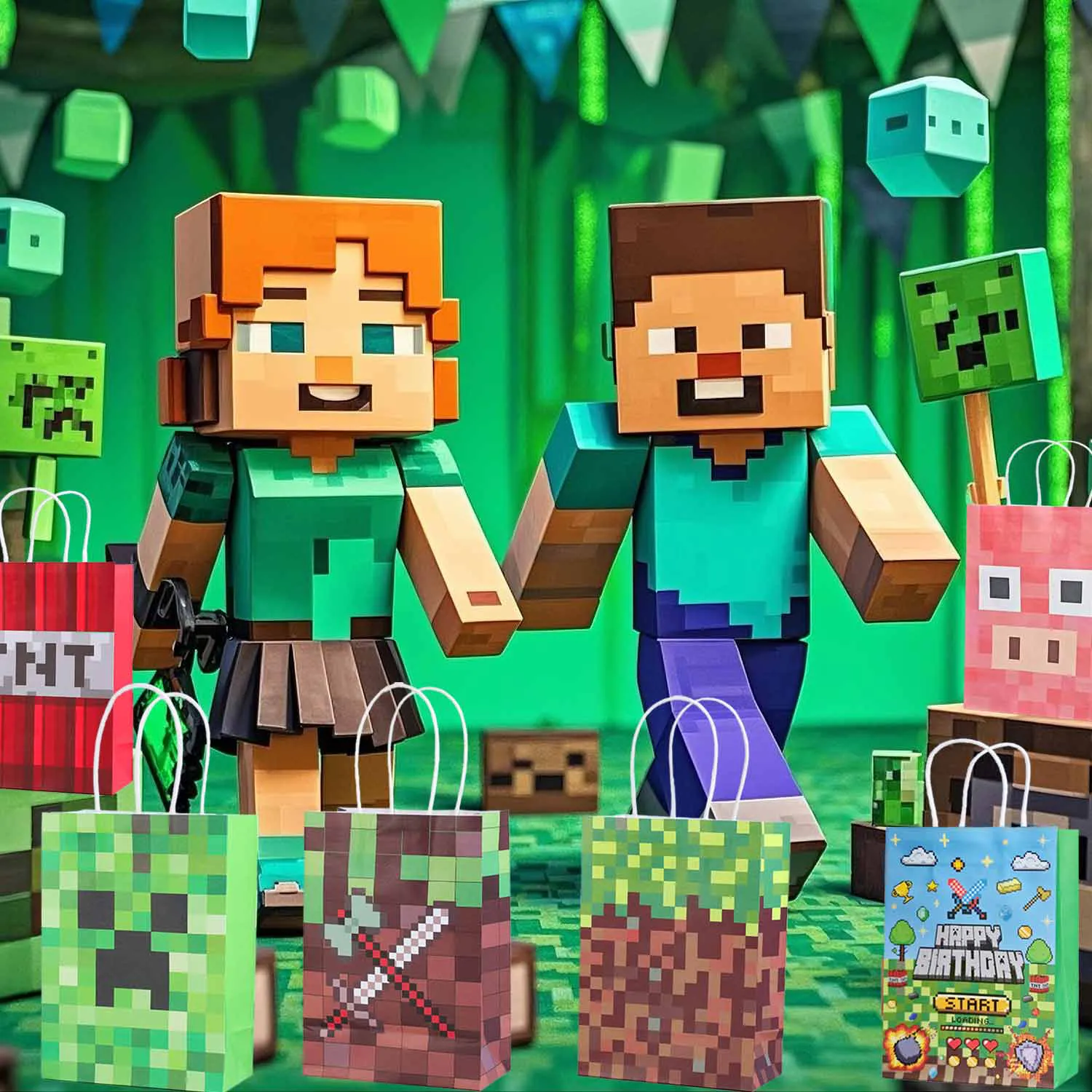 礼品袋的理想选择:无论是生日派对、寻宝主题派对、复古游戏派对,还是节日庆典,这款带有矿工元素的创意纸袋都是包装礼品的完美选择。