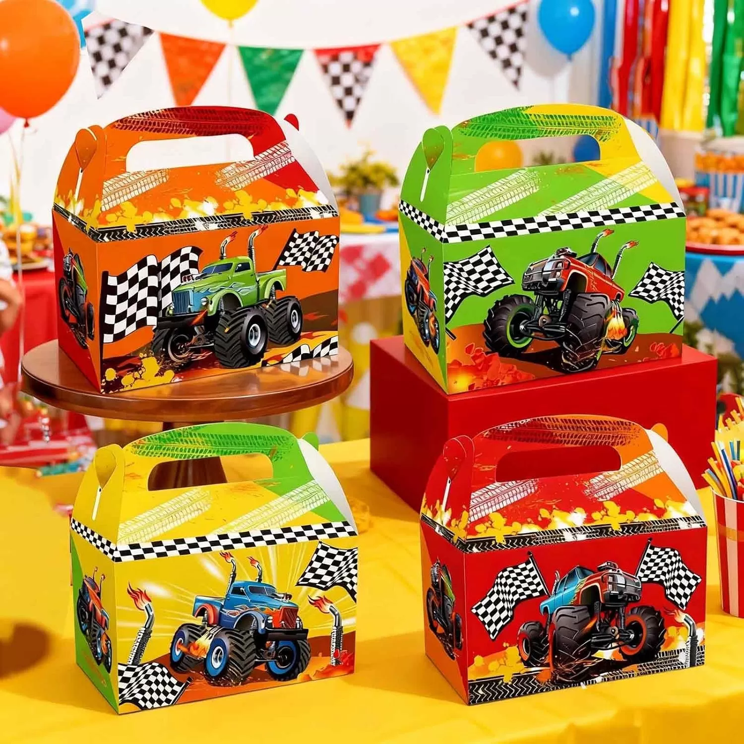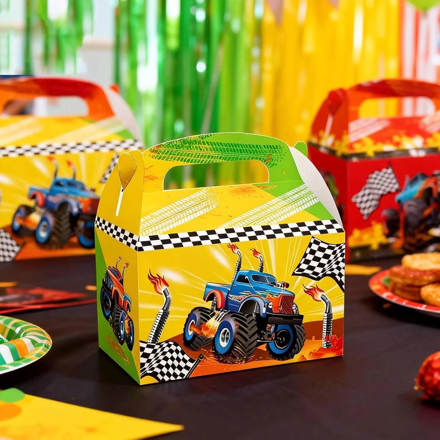 怪物卡车主题纸盒:这些礼品纸袋采用彩色卡车设计,增强了活动气氛并吸引了每个人的注意力。