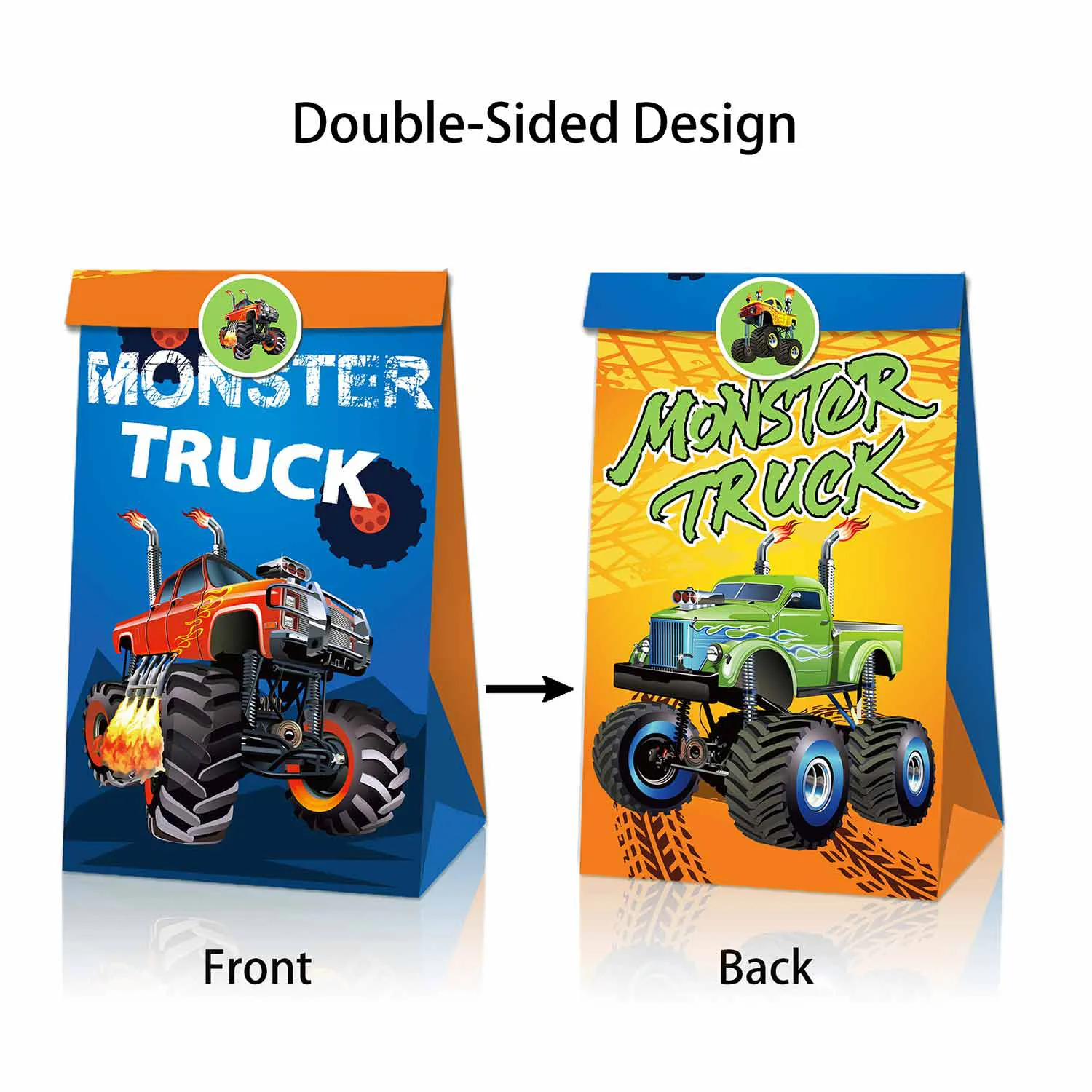 包裹数量:包括12个赛车包包,适合任何尺寸的派对。每个包都有把手和4种不同图案的双面设计,便于携带。