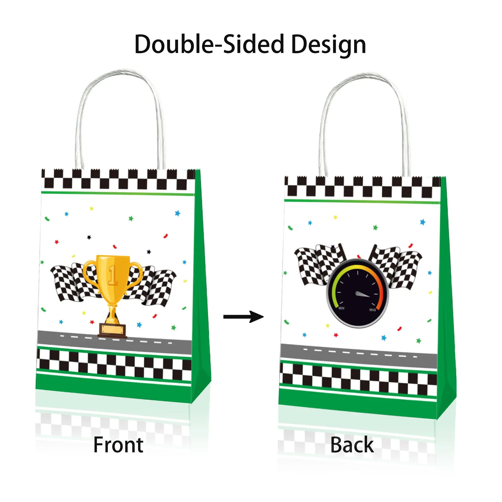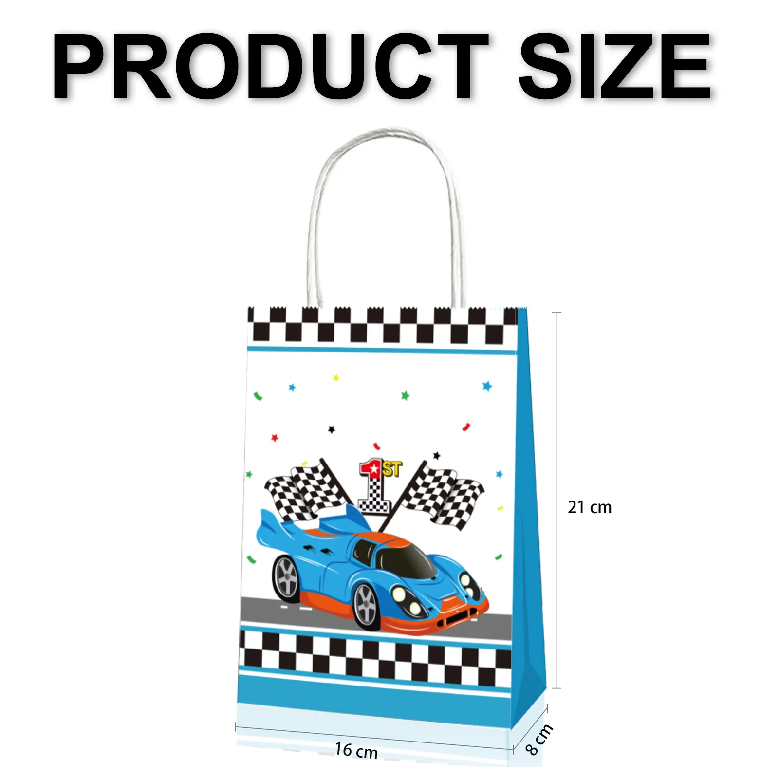 捷伦12 PCS赛车纸袋、黑白格子纸袋、战利品袋、赛车主题礼品袋、恩惠袋、牛皮纸手提袋