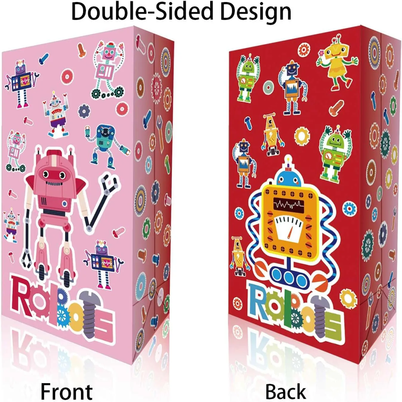 耐用优质的材料:这些机器人主题礼品袋由坚固的优质牛皮纸制成,足够厚以保持袋子的形状。印刷充满活力和抗褪色。