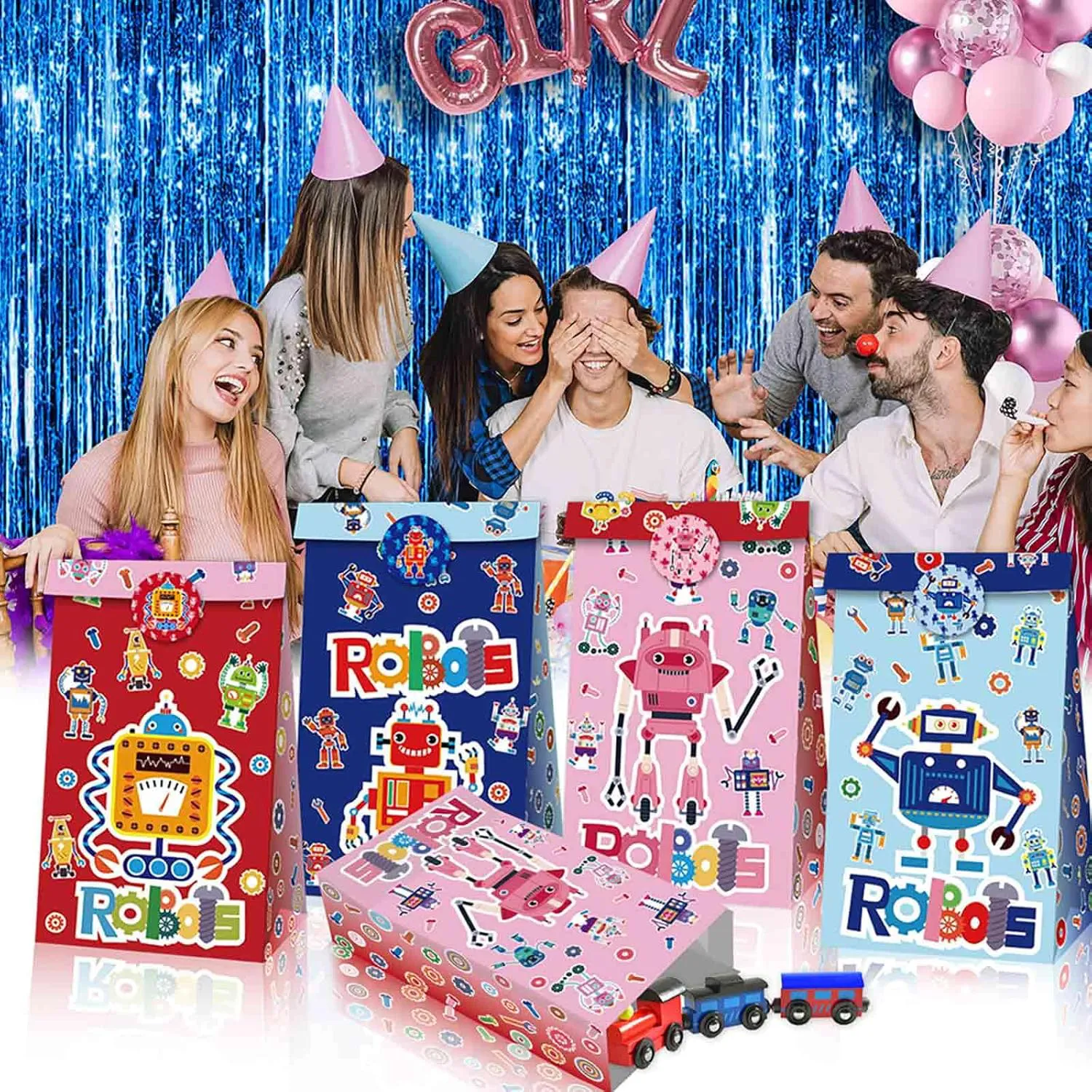 应用广泛:这些纸袋适用于婴儿送礼会、机器人主题活动、婚礼等场合。