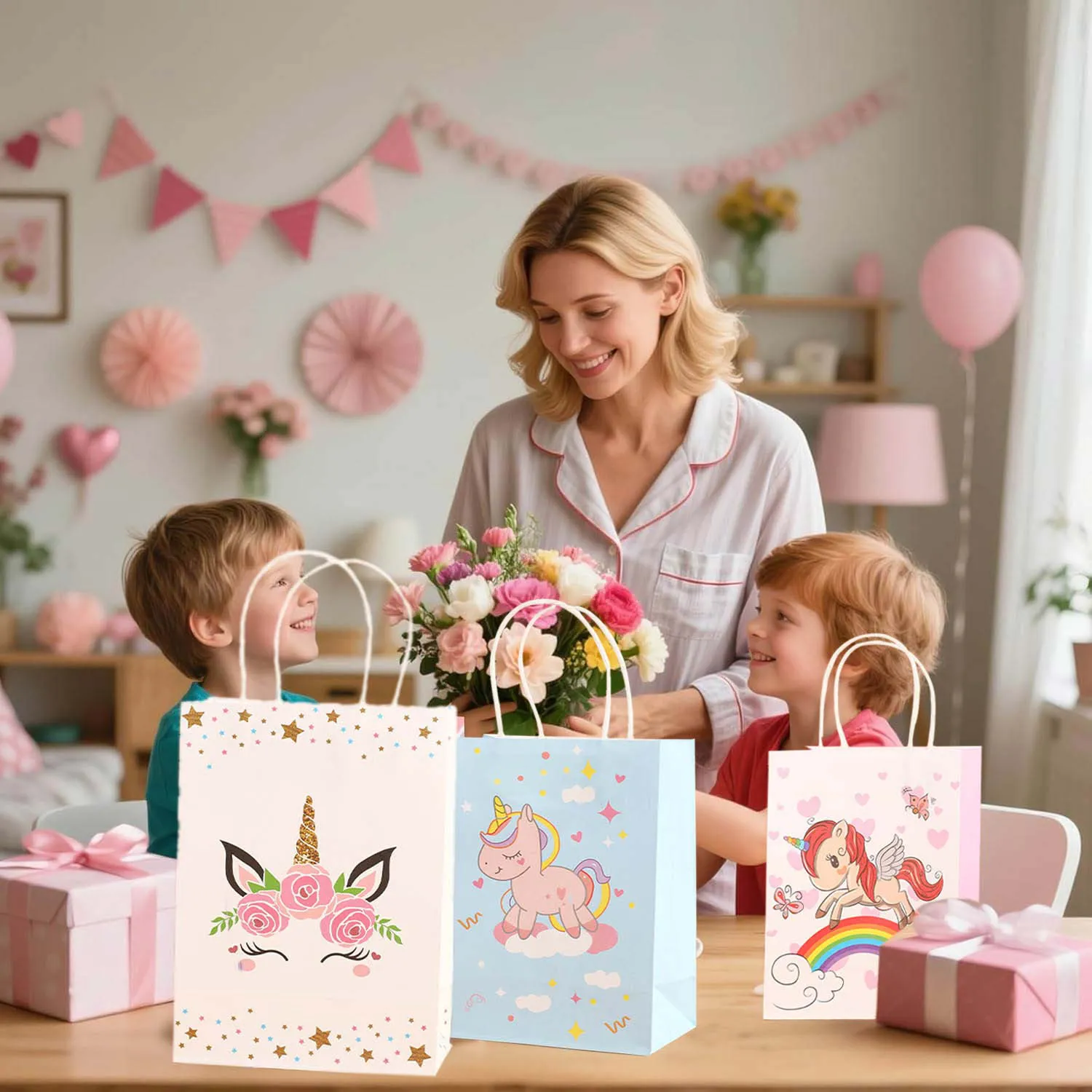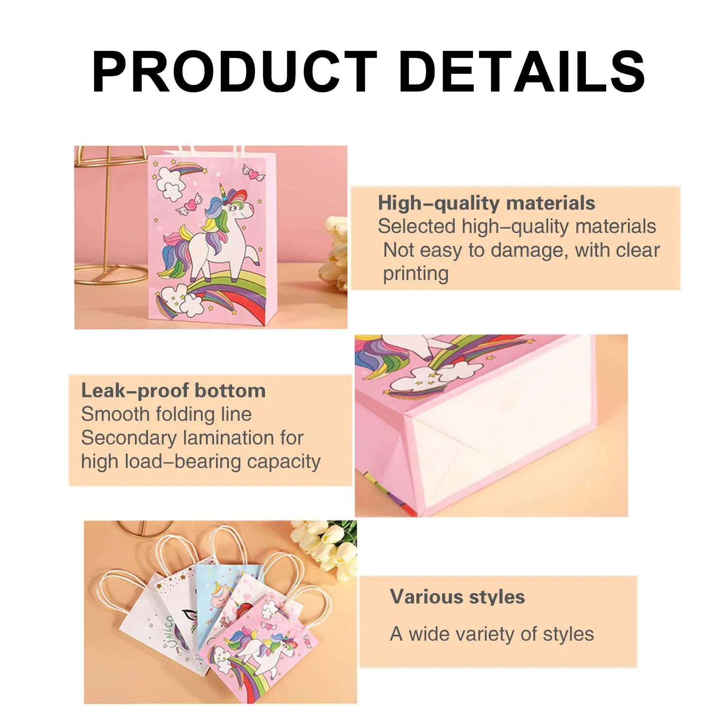 捷伦20个独角兽生日礼品手提袋,独角兽派对纸袋,礼品纸袋,奖杯袋,礼品袋,牛皮纸手提袋