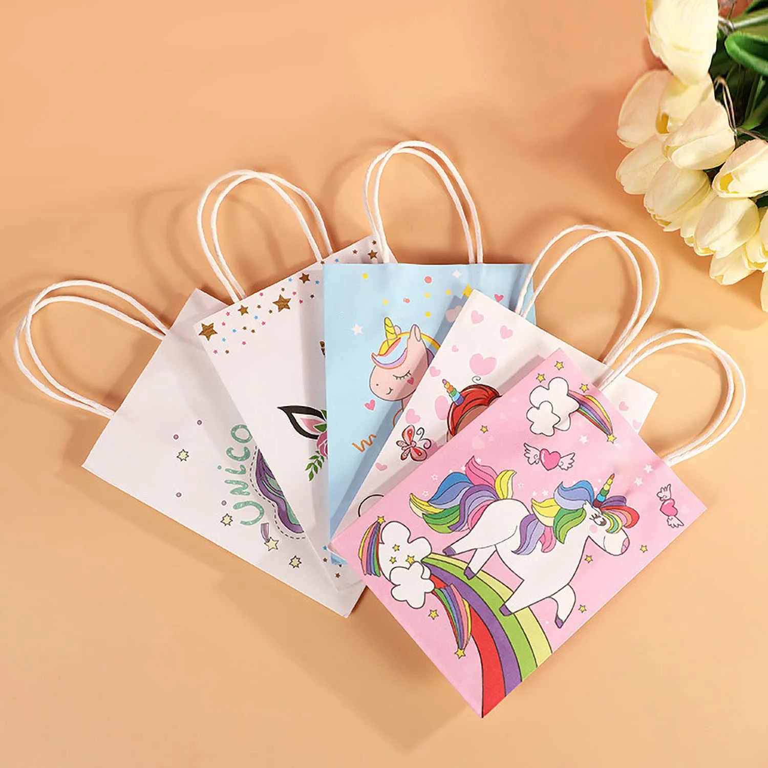 独特设计:彩虹马派对装饰礼品袋包括5种图案。彩虹马生日装饰品的手提袋如此引人注目和独特。