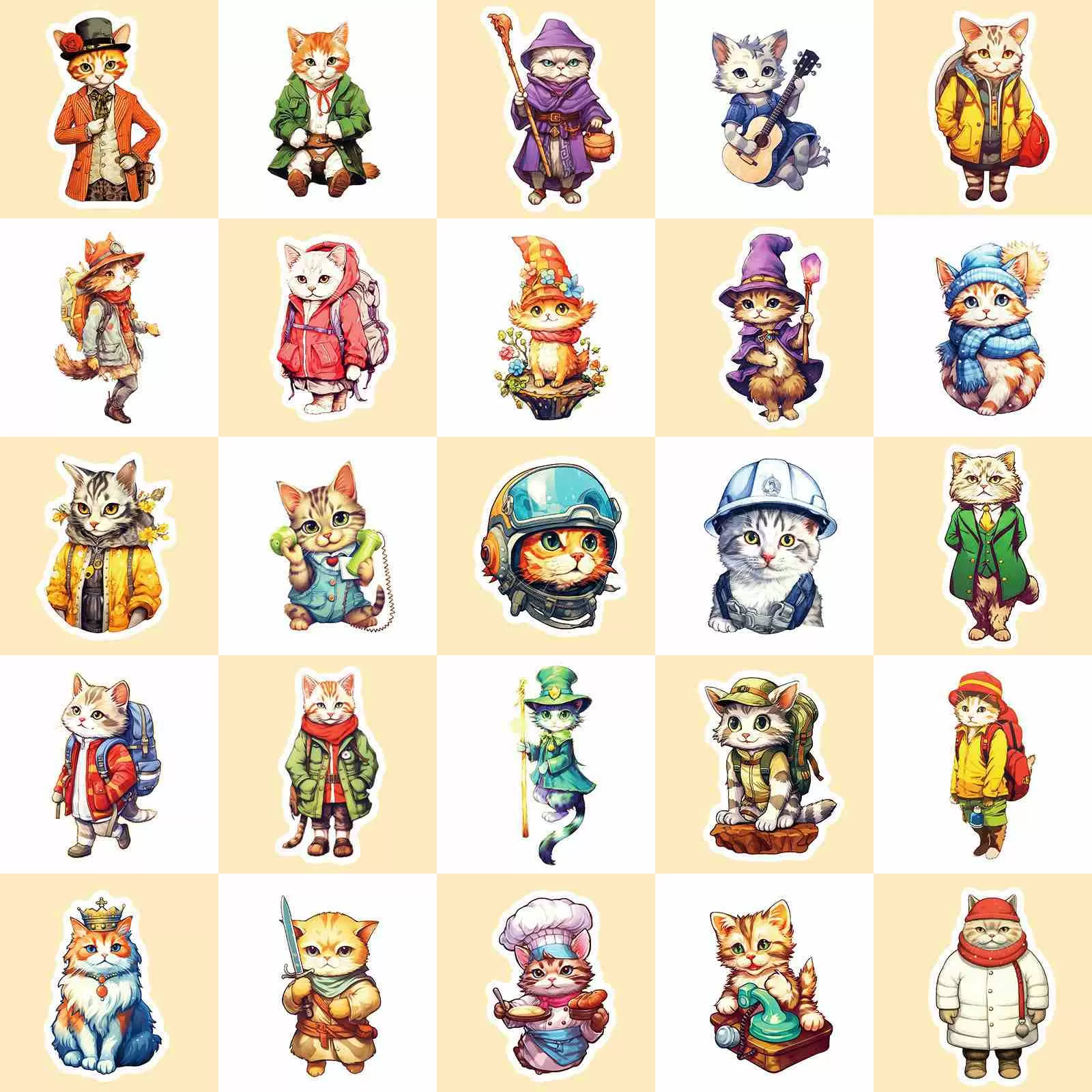 生动的水彩艺术设计:以柔和的水彩风格绘制的50幅独特迷人的猫插图为特色,每个猫都戴着一顶小帽子。这套美学和艺术设计非常适合为您的物品增添异想天开的感觉。